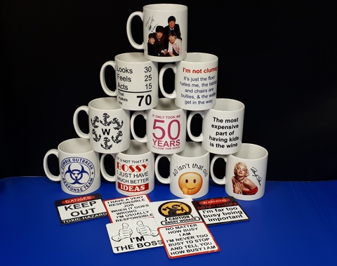 Mug Printing - We are able to print any picture or text onto a mug, whether it is a family snap or a child's drawing or a business logo. We can take pictures from most android phones via Bluetooth, or from email and even scan from hard copy.