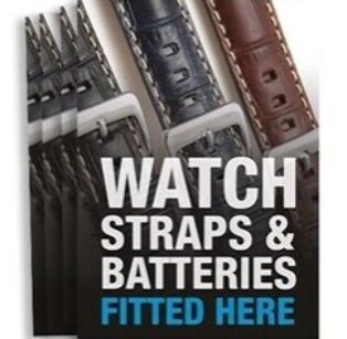 -a while-you-wait Watch Battery changing service. We also carry and fit a range of watch straps; in addition to this we can replace spring bars and pins as well as re-sizing most bracelet straps.